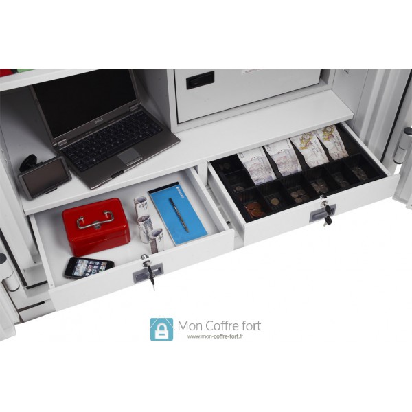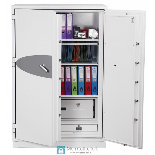 Stockez la totalité des biens inhérents à votre entreprise ainsi que vos affaires personnelles à l'intérieur du coffre-fort Phoenix Fire Commander FS1903E ! Doté d'une serrure électronique de grande qualité, elle offre la possibilité à son utilisateur principal de définir lui-même le code de bloquage. Celui-ci peut comporter jusqu'à 14 chiffres et un code de maître est activable pour plus de sûreté si vous autorisez l'accès à d'autres personnes.