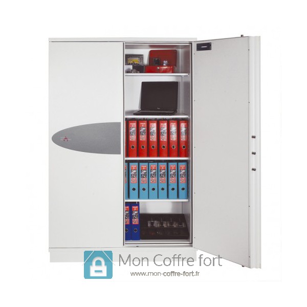 Le coffre-fort peut accueillir des données informatiques et les protéger contre le feu durant 30 minutes grâce à ses capacités ignifuges. Déposez aisément vos liquidités et biens précieux au sein du coffre-fort et classez-les à votre façon en vous servant des étagères déjà présentes dans le coffre-fort.